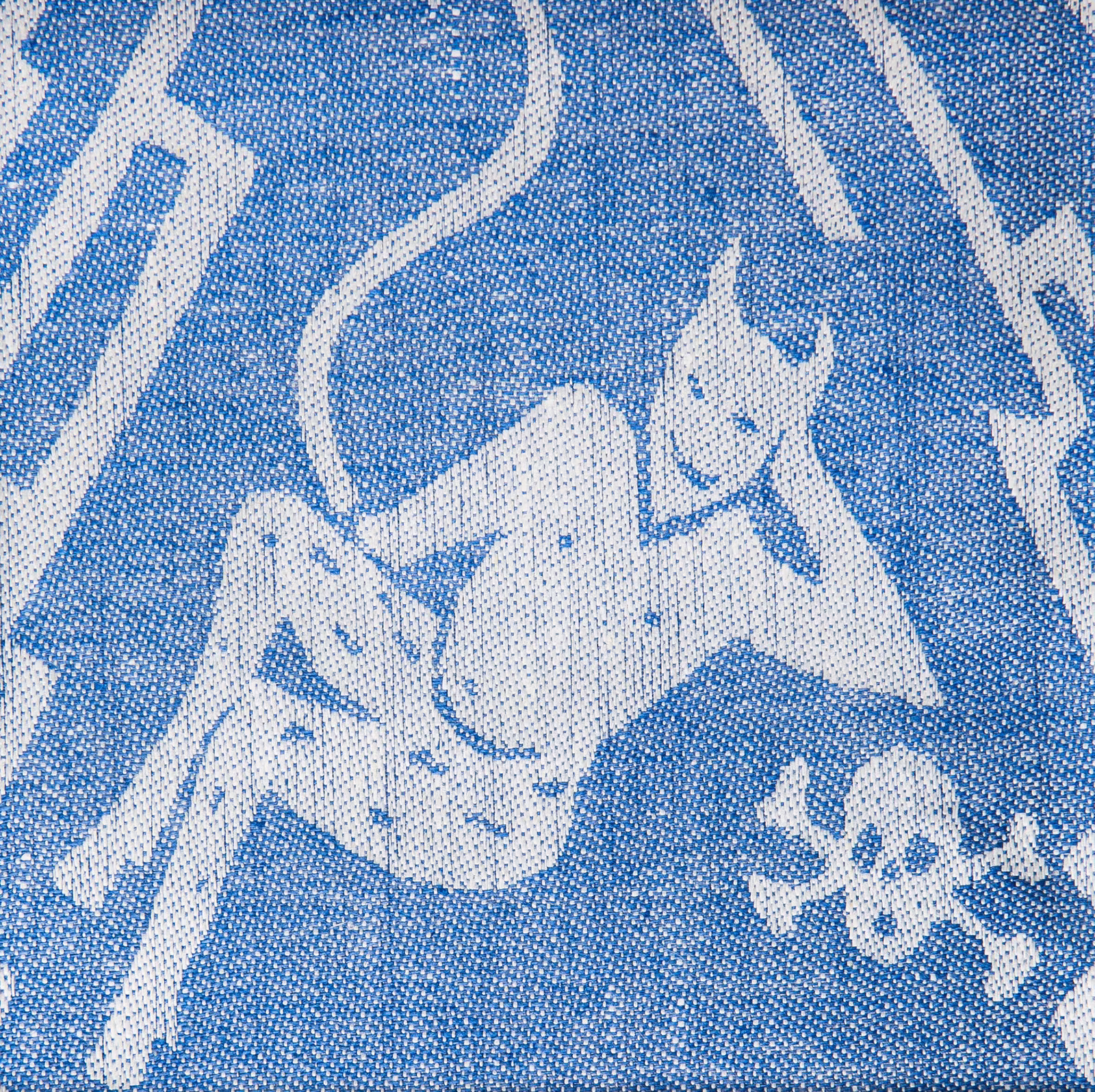 Helvete handduk. Wanja Djanaieff i samarbete med Svensk Slöjd. ”Att fritt efter folkkonsten tolka livet i form av starka symboler som Adam och Eva, enhörningar, fåglar, änglar, djävlar, med mera, på damast är som att föra ihop två kulturarv till ett. De starka färgerna anpassar dem till vår tid. ”Himmel och helvete” är en damastberättelse i modern tappning som bejakar våra rötter. ”Harmonika” kompletterar den.” – Wanja Djanaieff